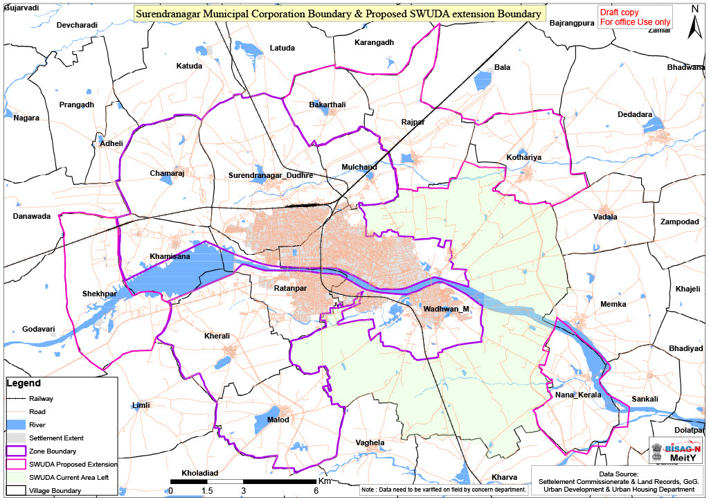 The Surendranagar Municipal Corporation is officially established by Government of Gujarat in exercise of the powers conferred by Clause (2) of the article 243Q of the Constitution of India & Published through notification no. - KV-19,20,21 OF 2025 - UDUHD/COC/e-file/18/2024/5957/P Section - on January 1, 2025 by merging the area of Surendranagar-Dudhrej-Wadhwan Nagarpalika i.e. (Surendranagar,Dudhrej, Joravarnagar, Ratanpar and Wadhwan) with five villages —Khmisana, Kherali, Malod, Mulchand, and Chamaraj as a part of the Surendranagar Municipal corporation's jurisdiction & also appointed an administrator to oversee the corporation's operations until the first election of councillors is conducted.